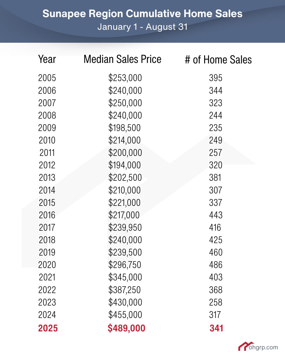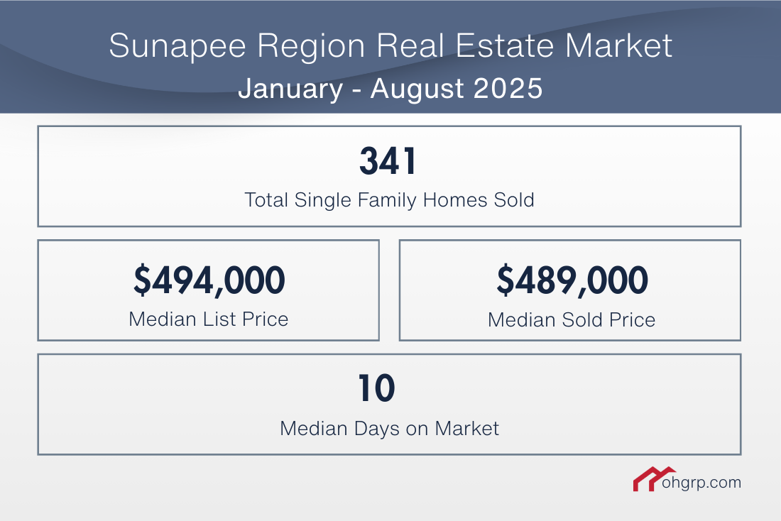 In the Sunapee Region, 62 single-family homes sold in August, bringing the year-to-date total to 341. So far in 2025, 41 condos and 15 mobile homes have also sold throughout the region.