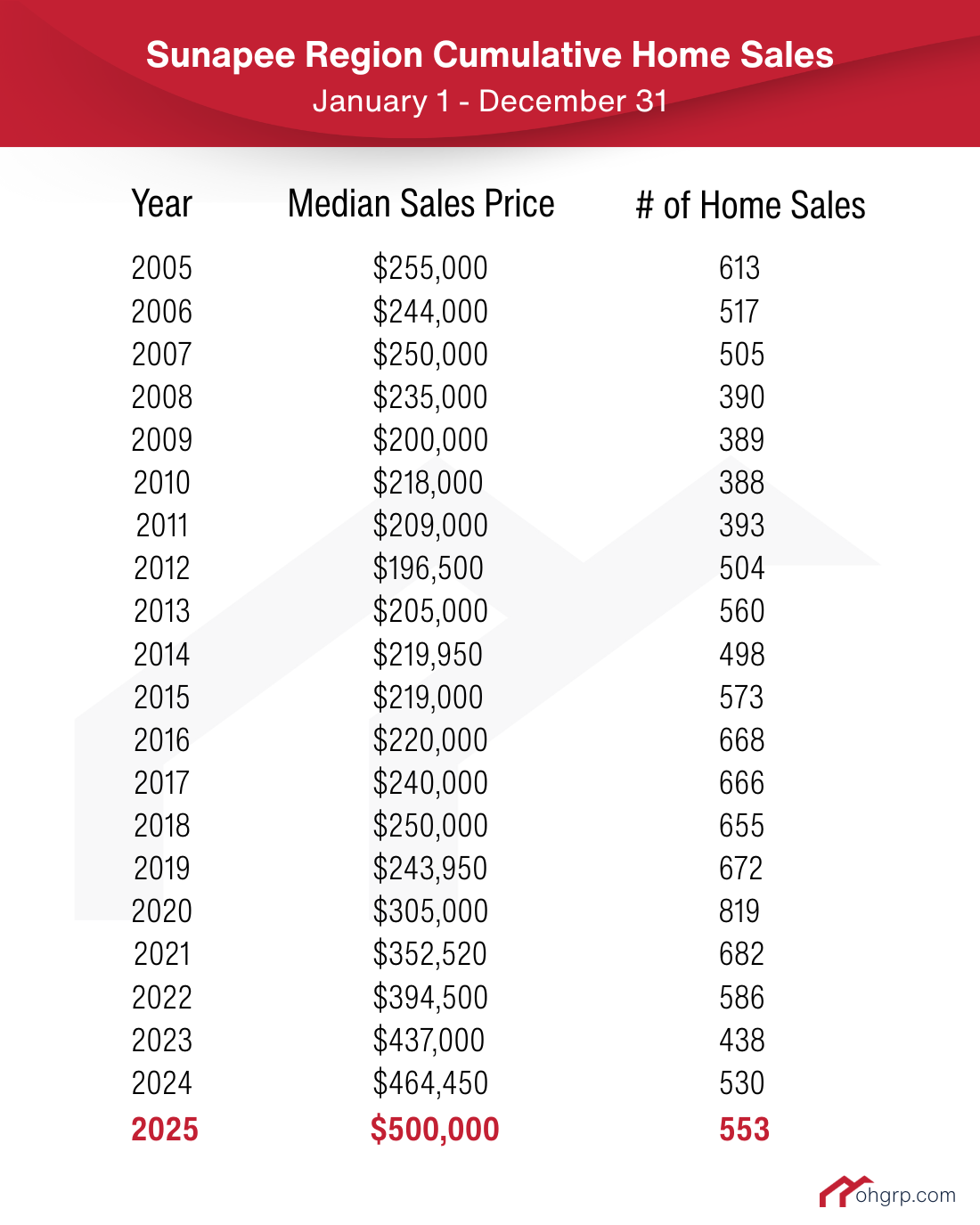 While county-level data helps highlight regional differences across New Hampshire, a closer look at the Sunapee Region and its individual towns provides additional clarity on how pricing and sales activity played out locally.